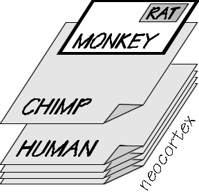![]() But, though everyone assumes that bigger is likely better, weve had trouble saying in what way that four times as much cortex has been better. There are increases everywhere in the forebrain structures during the evolution from apes to humans. Yes, there are some human abilities such as language, music, planning ahead, accurate throwing, and toolmaking that might require some additional cortical space beyond that available in the apes, but they havent been tacked on as a bulge here and a bump there, in the way a house is often enlarged over the years. It seems to be easier to increase all of cortex than just to selectively enlarge one piece. This wouldnt have surprised Charles Darwin, who emphasized specialized adaptations but also acknowledged that the underlying variations often involved quite general aspects of growth and form, inextricably linking some functions. Many of the new or improved-beyond-the-apes human skills seem to share cortical space with one another, allowing for conversions of function (as I discuss in How Brains Think, conversion and coexistence of functions in the same structure is yet another original insight of Darwins). And such multifunctionality has some interesting implications for the evolution of new functionality. You wouldnt think that a new function could spring forth fully formed, as Minerva leaped forth from the head of Jupiter but it can, thanks to sharing space with an older function. Such bundling of functions constitutes something of a free lunch. The new function might profit from some additional improvements for efficiency, but its invention per se is not likely to be understood by concentrating on such slow adaptations.