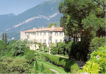 And here you see the view from the other side of the peninsula, looking northeast. That's Bellagio, ferryboats and all, nestled below the Villa and its grounds up the hill.