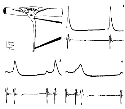 Calvin, W. H., and Hartline, D. K. (1977). Retrograde invasion of lobster stretch receptor somata in the control of firing rate and extra spike patterning. Journal of Neurophysiology 40:106-118. Available at WilliamCalvin.com/1970s/1977JNeurophysiol.pdf Can be viewed and printed in PDF format SUMMARY AND CONCLUSIONS |